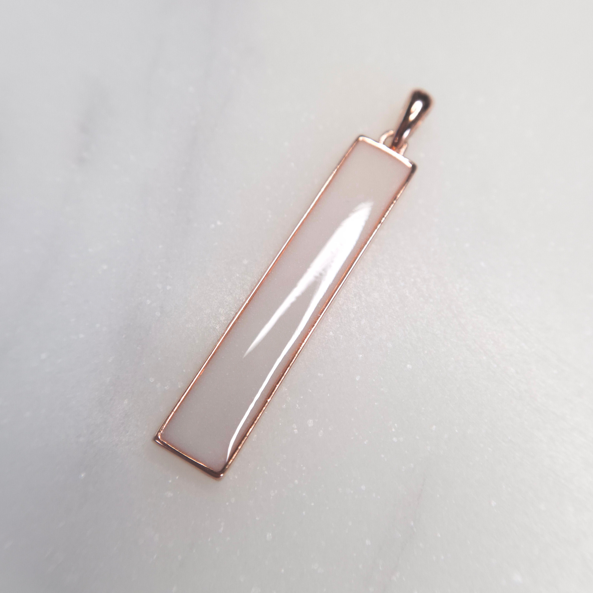 De hanger is 5 x 30 mm groot en wordt geleverd zonder ketting.